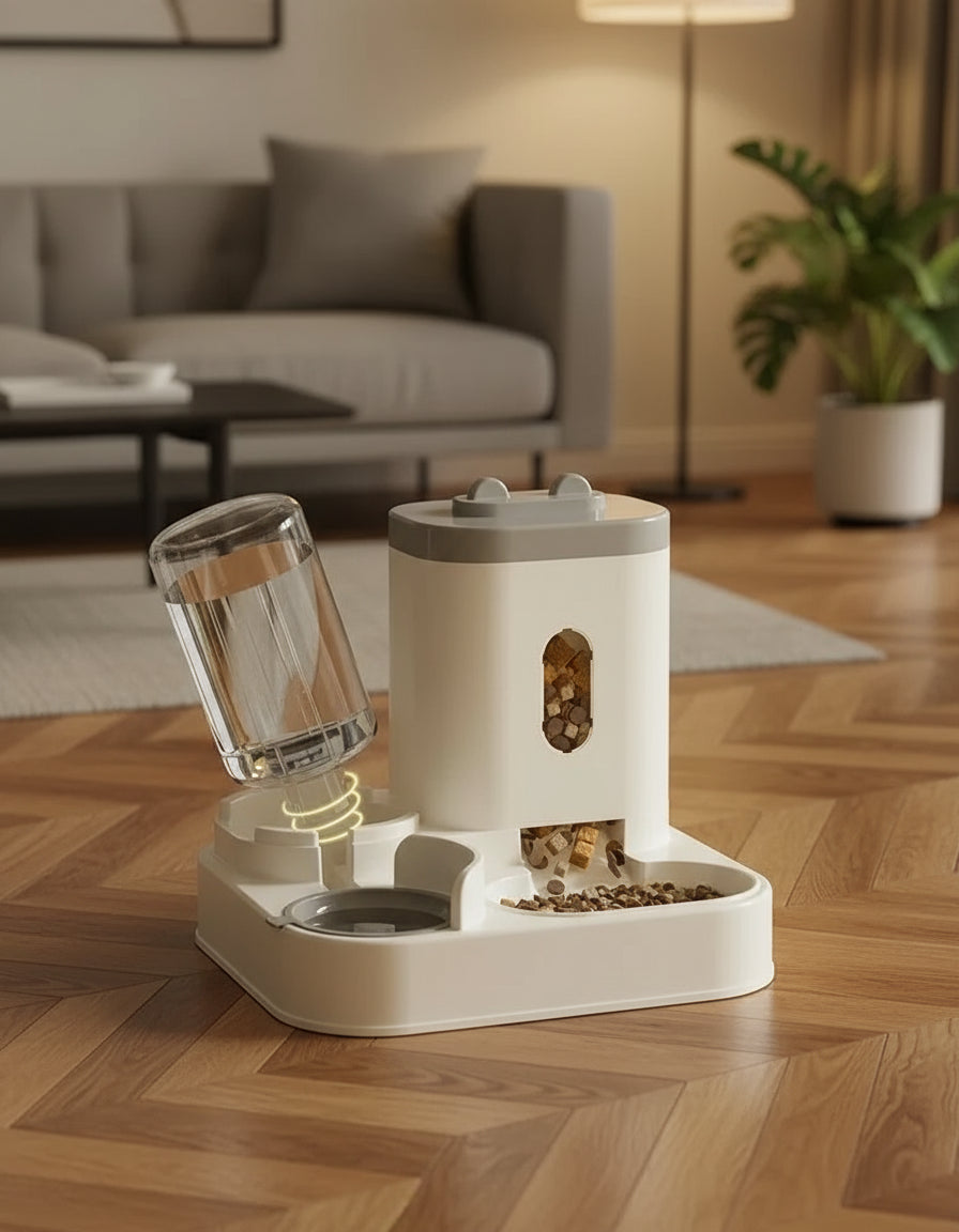 Introducing the Automatic Pet Feeder with Water Fountain – the ultimate 2-in-1 solution that keeps your dog or cat fed and hydrated, even when you're away from home!